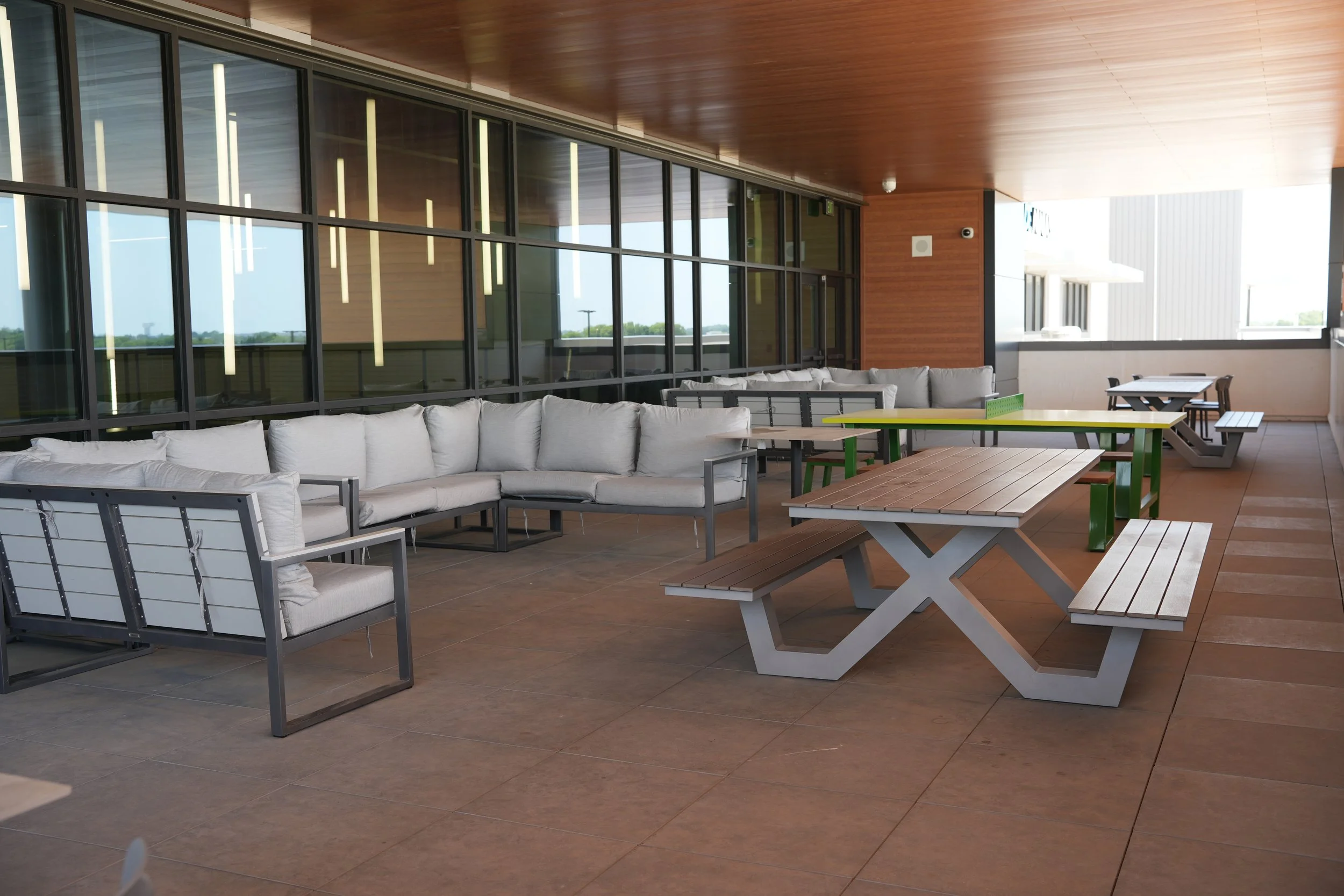 1,600 sq ft of open-air space with scenic views and comfortable seating. Ideal for casual gatherings and small receptions.
