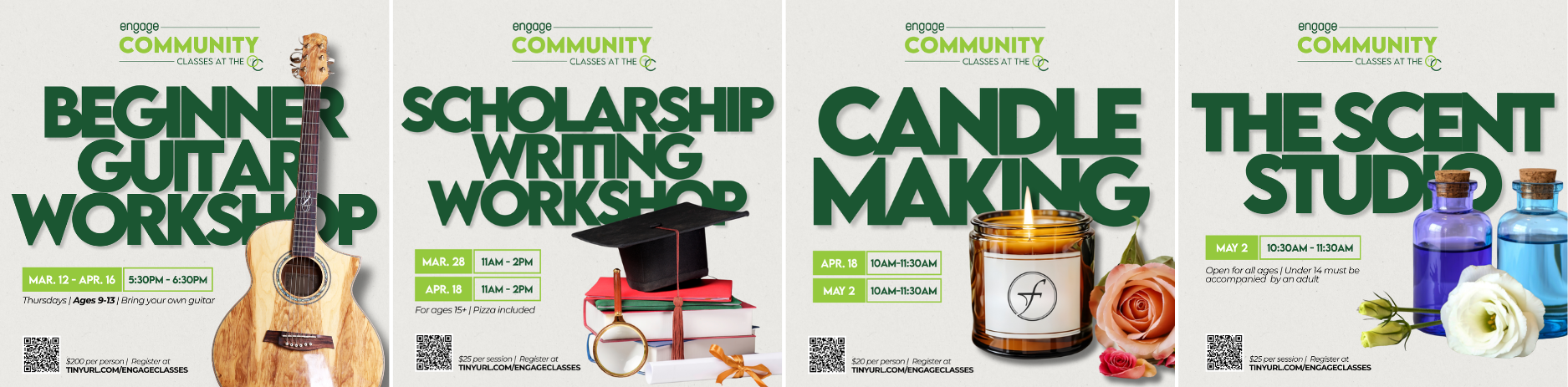 From mastering the fretboard to securing college funding, our Engage Space is transforming into a hub of creativity and learning. Check out what’s coming up and grab your spot before they’re gone!